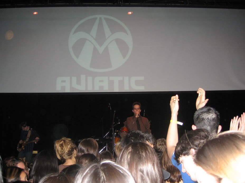 Next band was Aviatic. They were older, kind of professional. The guys liked them more than faulter, I thought their music made me sleepy and the lead singer looked like Jerry Sienfeld esp with his stock broker getup. You're not belibening to me? You wats!