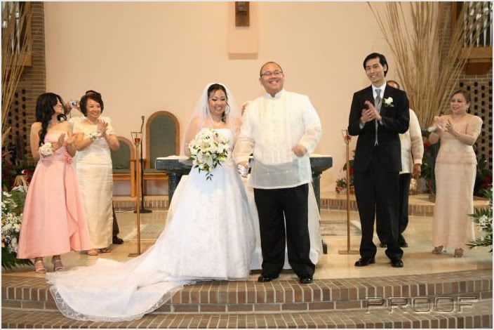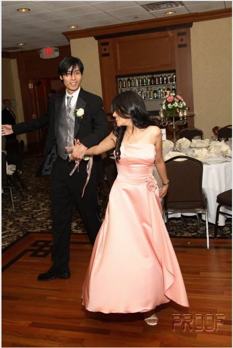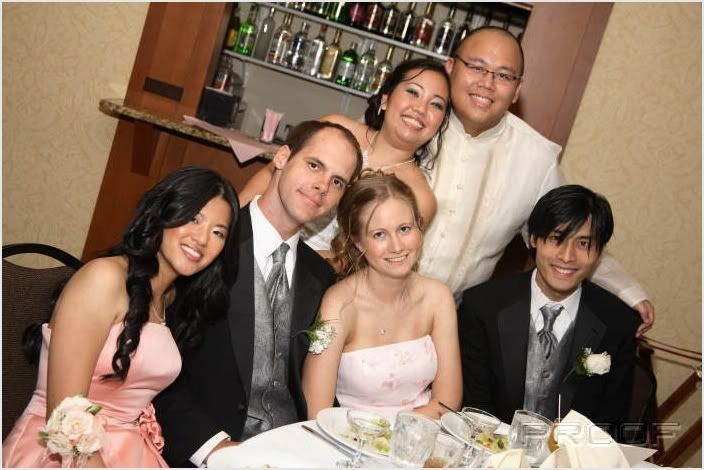 I still need to check out Central Park, Strawberry field and the Dakota...oh and Tiffany & Co. All in all, I think we did pretty good considering we weren't even allowed to go and we only had a few hours to do it. I got to taste my first NY pizza too and ate it on the way home :) On ward to the rehearsal. I finally got to meet the best man, Gibson. The bride actually had a crush on this guy before she got together with her current husband Mark. Mark even encouraged her to go for it cause he was confidant his friend wouldn't go for her >_> what a bastard! lol ANYWAY, he's lucky she wasn't serious. But he does know my friend can be full of infatuation all the time. I know she is. Gibson, is very tall. about 6-6'3" and Chinese. IJ, the bride, is into tall light skinned guys either Chinese or white-ish looking dudes. I guess he fits. Mark is complete opposite, but I think they match perfectly and he's smart enough to handle her childishness. Now IJ, has been insisting we make a great looking pair, like we're siblings. Okay well looking related is kinda weird, but anyway Gibson is pretty cool. I do prefer taller guys, but he's like a foot taller. When he holds my arm as we walk, my arm is nearly raised up to my shoulder. I am 5 ft tall btw. He's a skinny kinda nerdy and quiet, smart and ultimately very funny, but a bit too timid and his voice is way deep I know it's just me being picky. But yeah he's cool. Anyway during the ceremony, he and I have our own seats on the altar area of the church next to the bride and groom. My job as the maid of honor is to tend to the bride and make sure her bouquet and dress are okay through the ceremony. Boy were my duties maxed out. Her train kept on getting messed up and detaching itself. Her sisters told me Gib would stealthily check me out each time I would walk to fix the train. Of course that made me laugh, but I honestly thought how the heck could you not look while I did that anyway? You can't help it. Besides, it's not like he can look into air, esp where we were sitting. There wasn't much to look at. If that was true, well I am amused. To the very Reception, Gibson and the other groomsmen and bridesmaid sat at the same table as I. Poor Gib had no idea where to sit, but eventually found his place on the opposite end of my chair. He was farthest from me and we didn't really talk throughout the dinner. Our places were pretty much assigned. IJ's family really wanted me to sit with the family, but I didn't mind sitting with the wedding party. I would have felt kind of awkward if it were only the three of them at one table. At least I evened it out.During the bouquet toss I didn't bother to grab it...you know cause they had to stick the garter on the gal